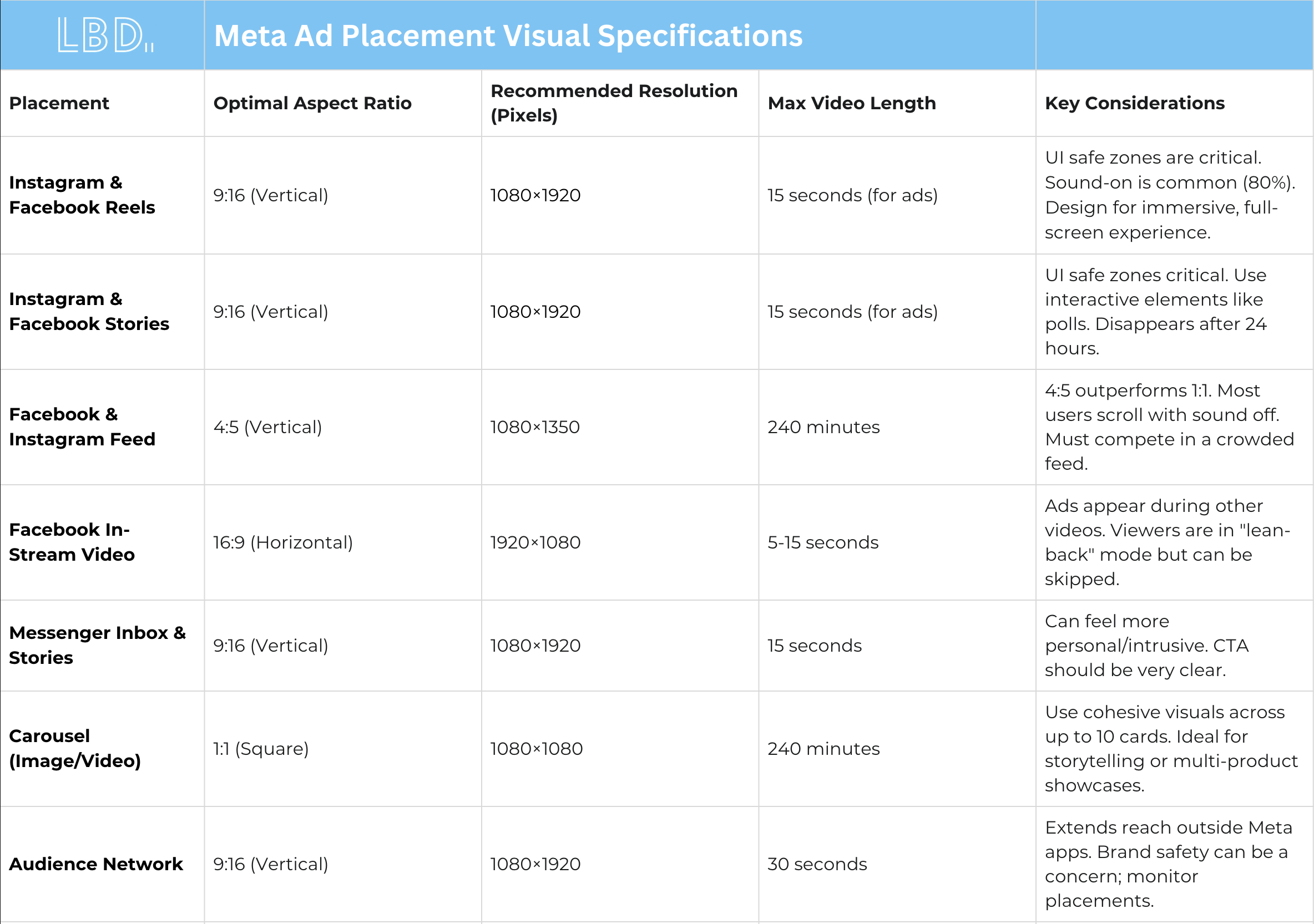 Table 1: Meta Ad Placement Visual Specifications